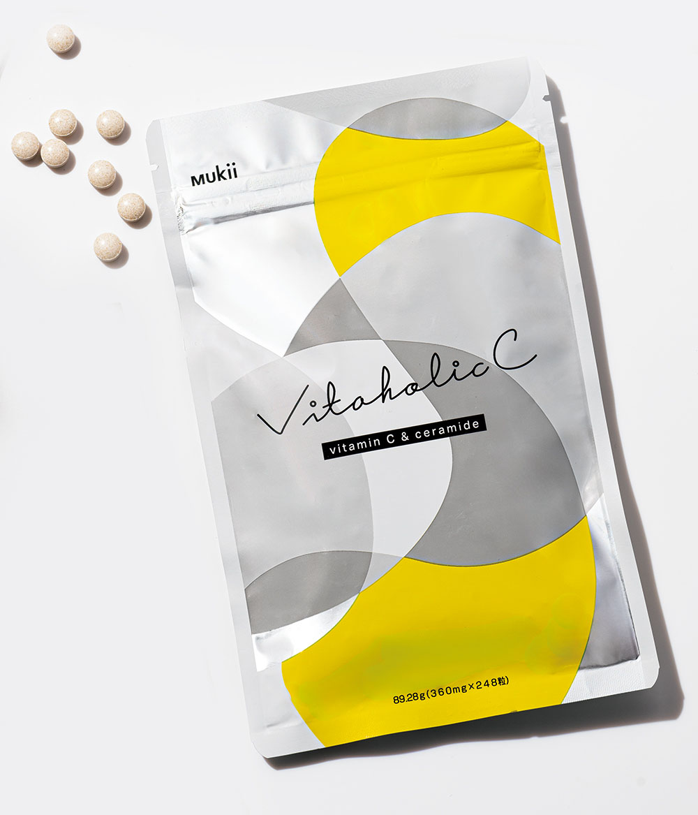 1日8粒でレモン果汁50個分のビタミンCにセラミドを配合。チュアブルタイプで飲みやすい。ビタホリックC 248粒(1カ月分) ¥3,861 /Mukii