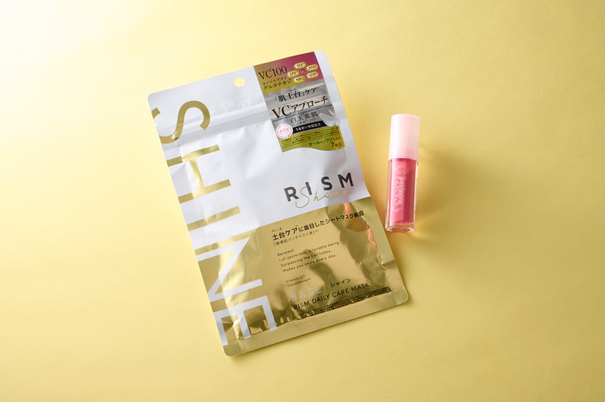 <写真左>LDK the beauty 2024年ベストコスメを受賞したシートマスクで、グルタチオン配合でくすみやハリ不足を改善します。忙しい朝や疲れた日にも、パックするだけでツヤと透明感、うるおいを与えてくれるので、リピートしています。