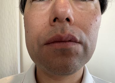 もたついていた口元がすっきり! ほうれい線は小鼻の下から線が入っていましたが、小鼻の上に上がっています。人中もぼってりと重く見えていましたが軽いイメージに。顎のスペースも狭くなり小顔効果も。