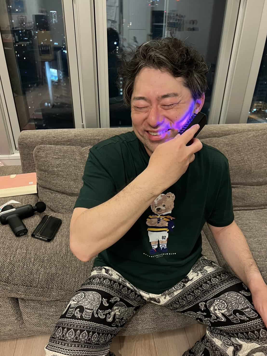 興味本意で始めた美顔器でしたが、始めて間もない時から鏡で見た自分の顔に変化を感じました。日々、変化していく自分のフェイスラインが崩れていくことに勿体なく感じ、毎日美顔器を使い続ける習慣がつきました。一カ月経過したころには自分の顔が若返ってきたように感じ恍惚感が得られ、さらに毎日続けた過程から得られた達成感と相まって、長年停滞していたダイエットにまで本腰をいれるきっかけにもなりました。妻も変わっていく私を見て話が盛り上がり、夫婦の会話も弾み家庭内が明るくなったように感じます。