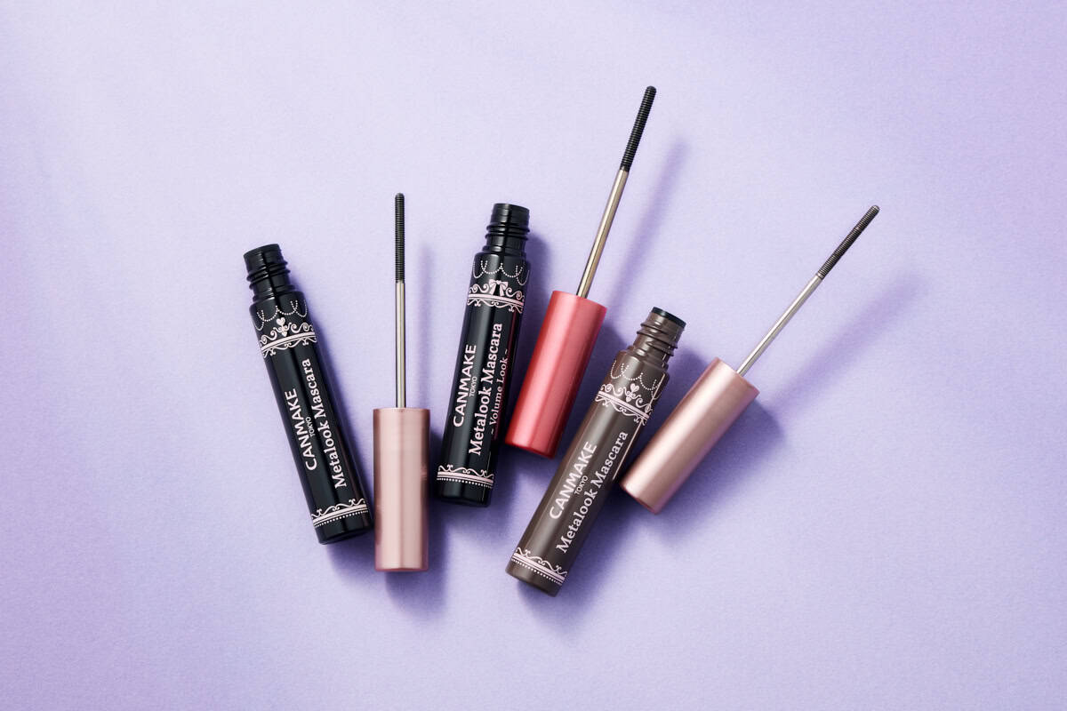 写真中央のマスカラは、既存のメタルックマスカラにさらなるボリュームを追求して今年登場した、メタルックマスカラ〜ボリュームルック〜V01 ブラック(¥990)。