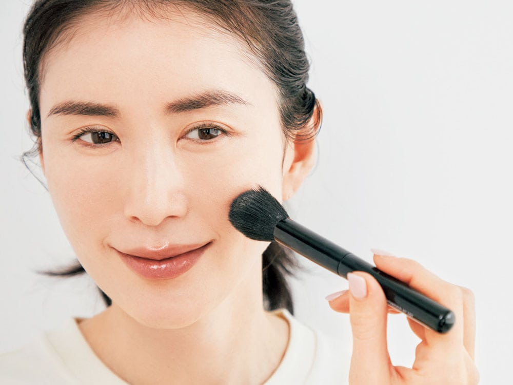 パウダーは大きめのブラシを使って、毛穴の凹凸と黒ずみをフワーとぼかすかんじでブラインドする。