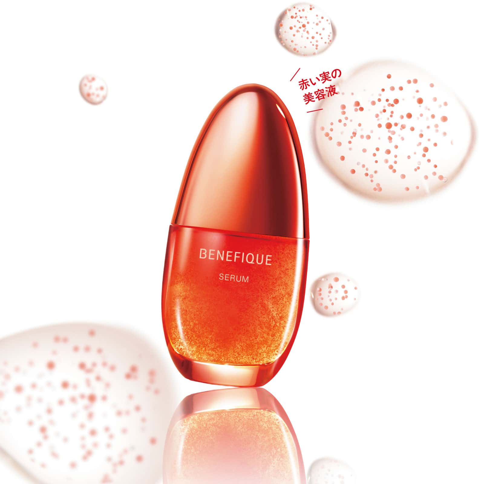 透明ジェルがなじんだ後、美容成分を包んだ赤い粒がはじける「時間差浸透処方」でふっくらとしたハリ感をもたらす高保湿エイジングケア※1美容液。植物由来のうるおいと深呼吸したくなる香りで、肌も心も満たされて。
