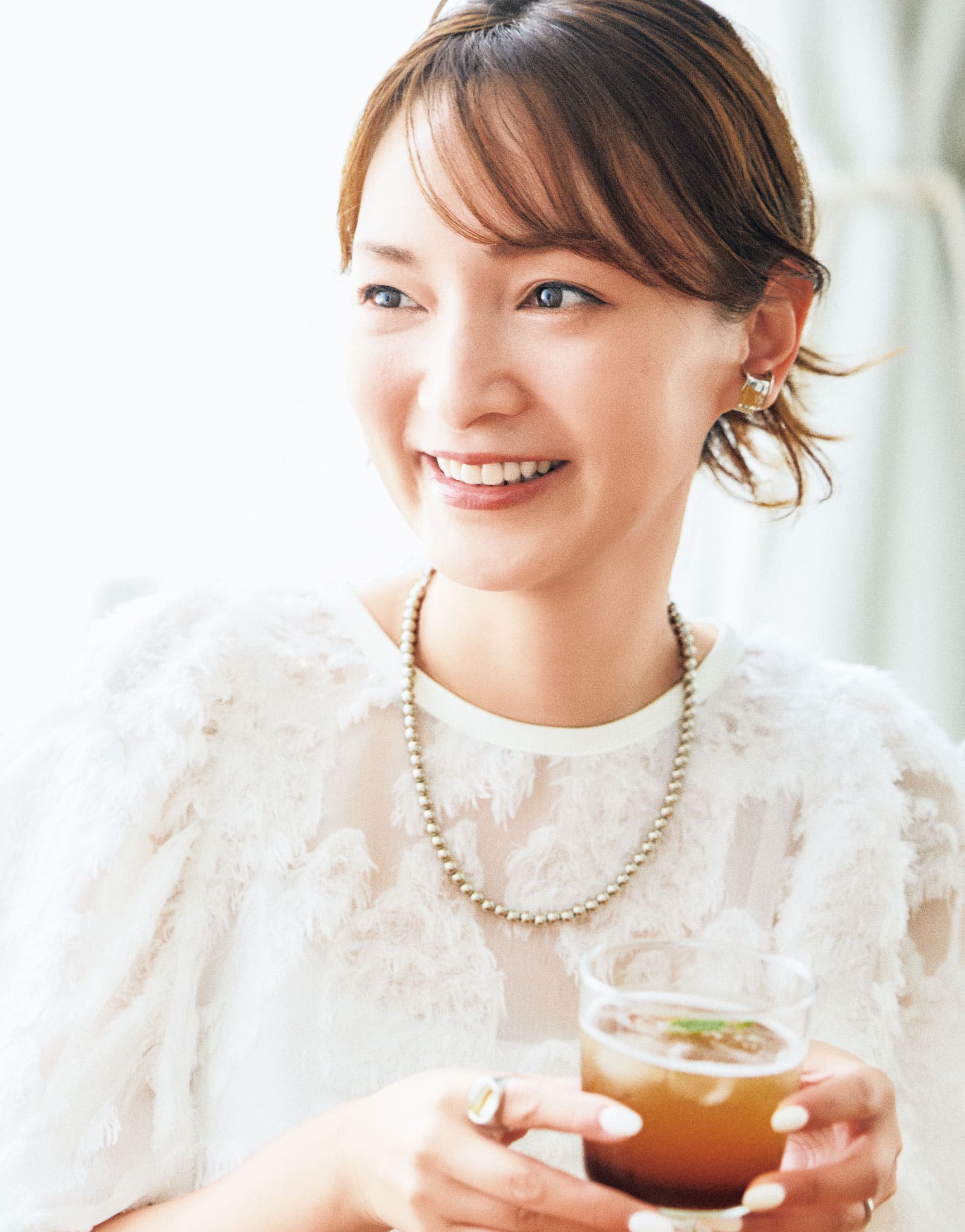 ブラウス¥27,500(OBLI/LUCK TOKYO)ピアス¥27,500(バウゴヘイアン)バングル¥44,000(アプシス)リング¥16,500(アグ)