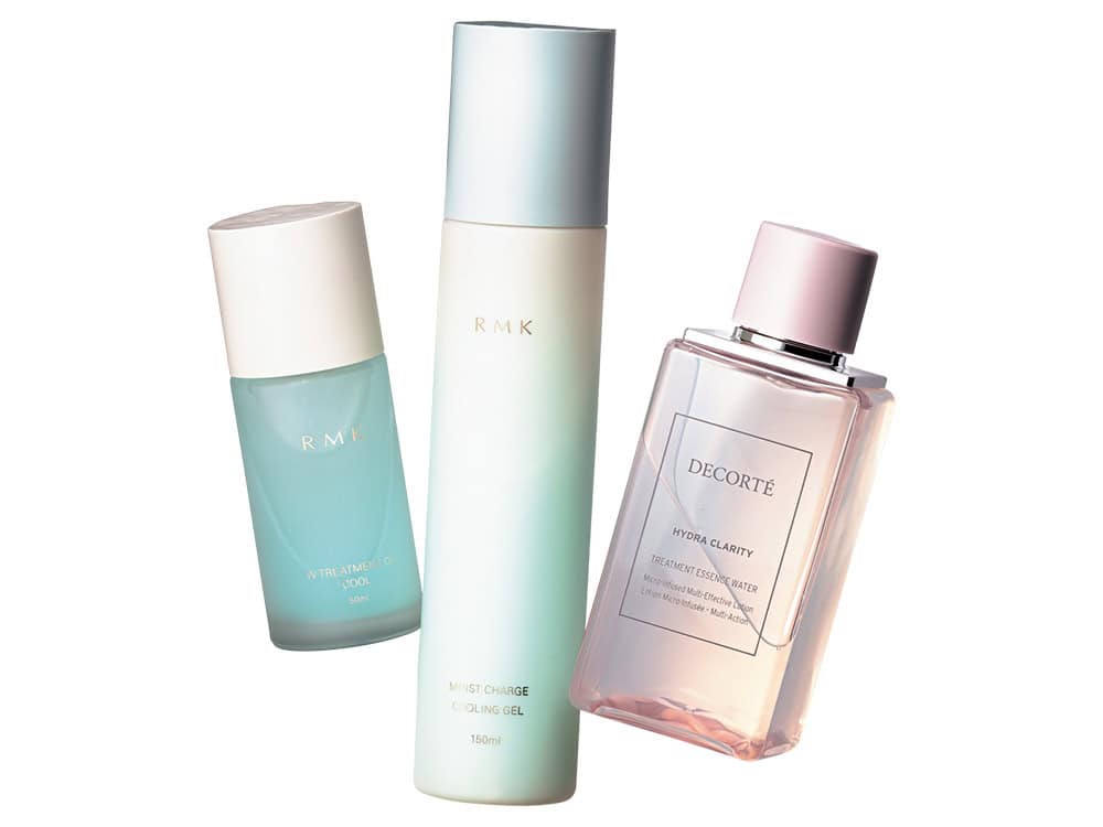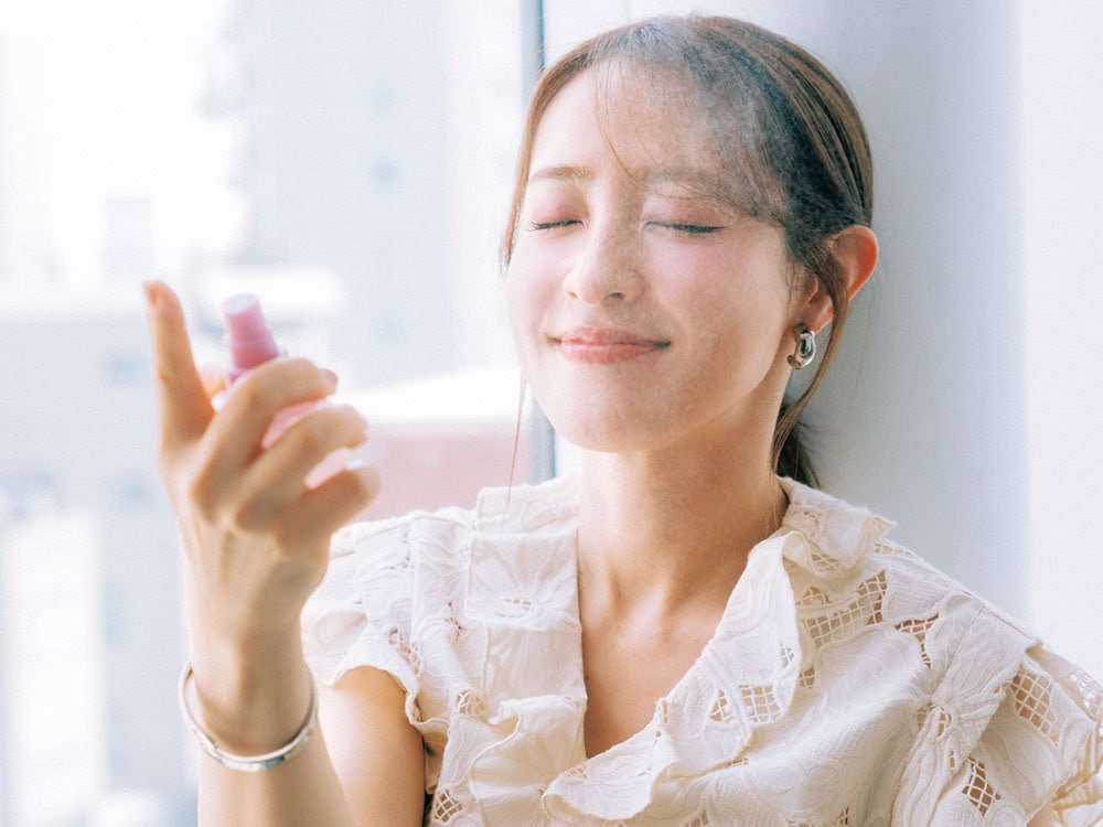 過酷な夏でも、大沢あかねさんが大事にしているのが「スキンケアの時間」。夏も朝の保湿はマスト! ひんやり感のあるものや、さらっと軽やかなテクスチャーのものに切り替えて、肌も気持ちも涼しく整えて。