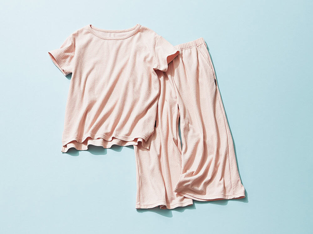 リカバリーニットサッカー セットアップ ショートスリーブ ガウチョパンツ レディース ピンク ¥24,200/VENEX