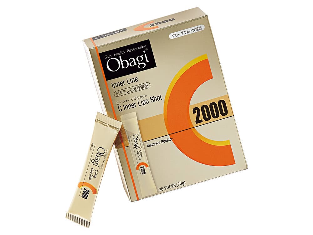 ターンオーバー促進美肌効果もあるビタミンC。飲むビタミンCで内側からのハリとうるおいを叶える。オバジC インナーリポショット 62本入り ¥8,370/ロート製薬