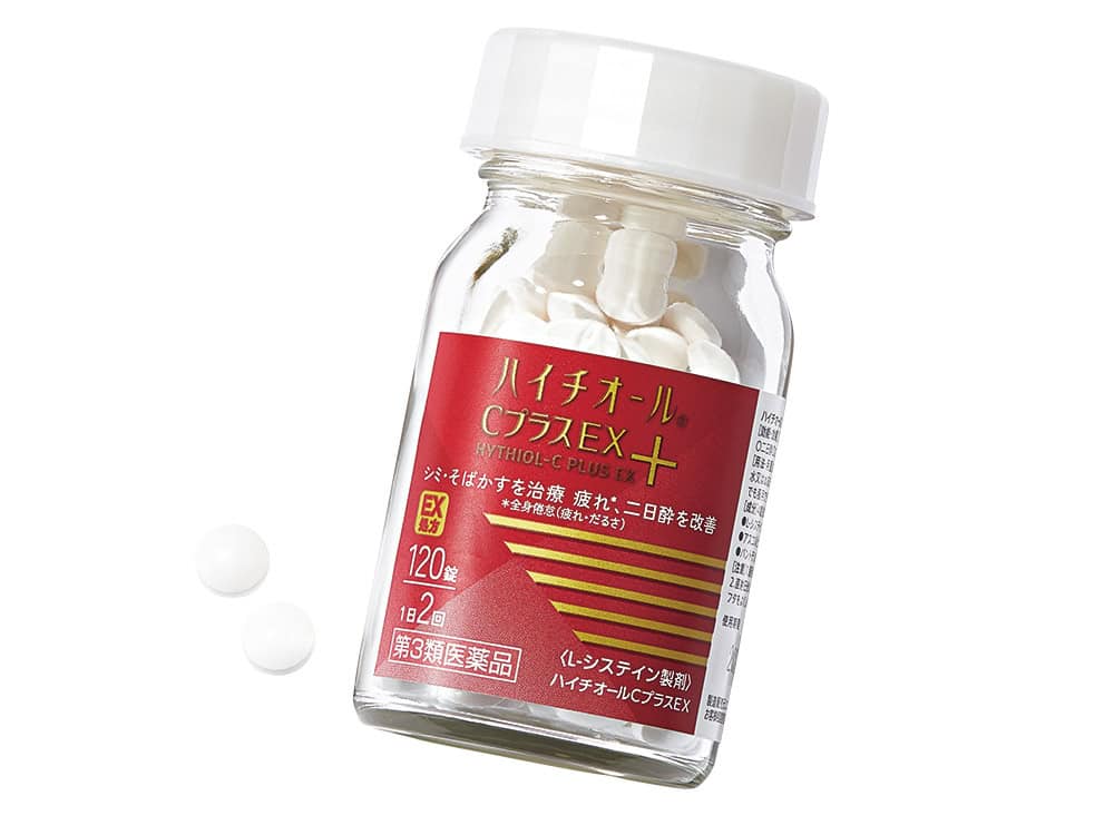 L-システインで日焼け後のケアも抜かりなく。メラニンの過剰な生成を抑制する効果が。ハイチオールCプラスEX【第3類医薬品】120錠 ¥2,493(編集部調べ)/エスエス製薬