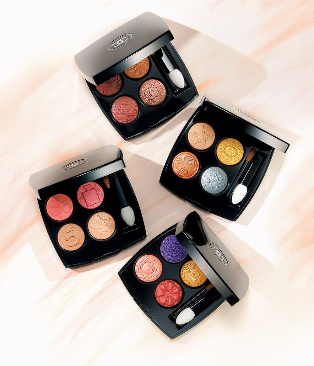 シャネルのメークを代表するアイシャドウ「レ キャトル オンブル」がメゾンのアイコンアイテム「ボタン」と融合。4色それぞれが異なるボタンのデザインで表現され、繊細にきらめくパウダーがまぶたにしっとりなじみ、長時間クリアな発色が続きます。付属のベルベットポーチのデザインも4種それぞれ異なるコレクターズアイテムです。