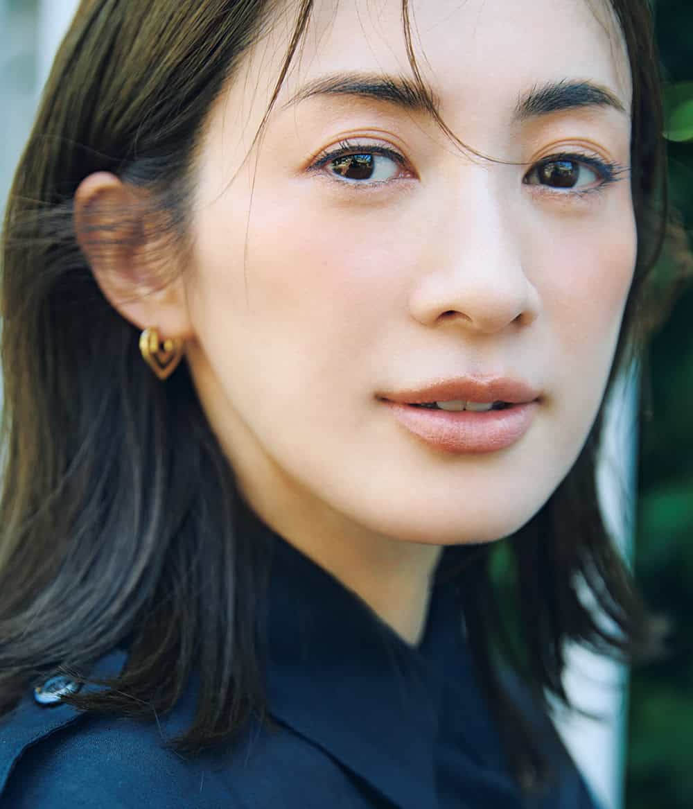 ブラウンチークを重心高め・鼻の近くまで横長に入れたサンタンメークで凜としつつ気負わないスタイルに。洒落感も上々!