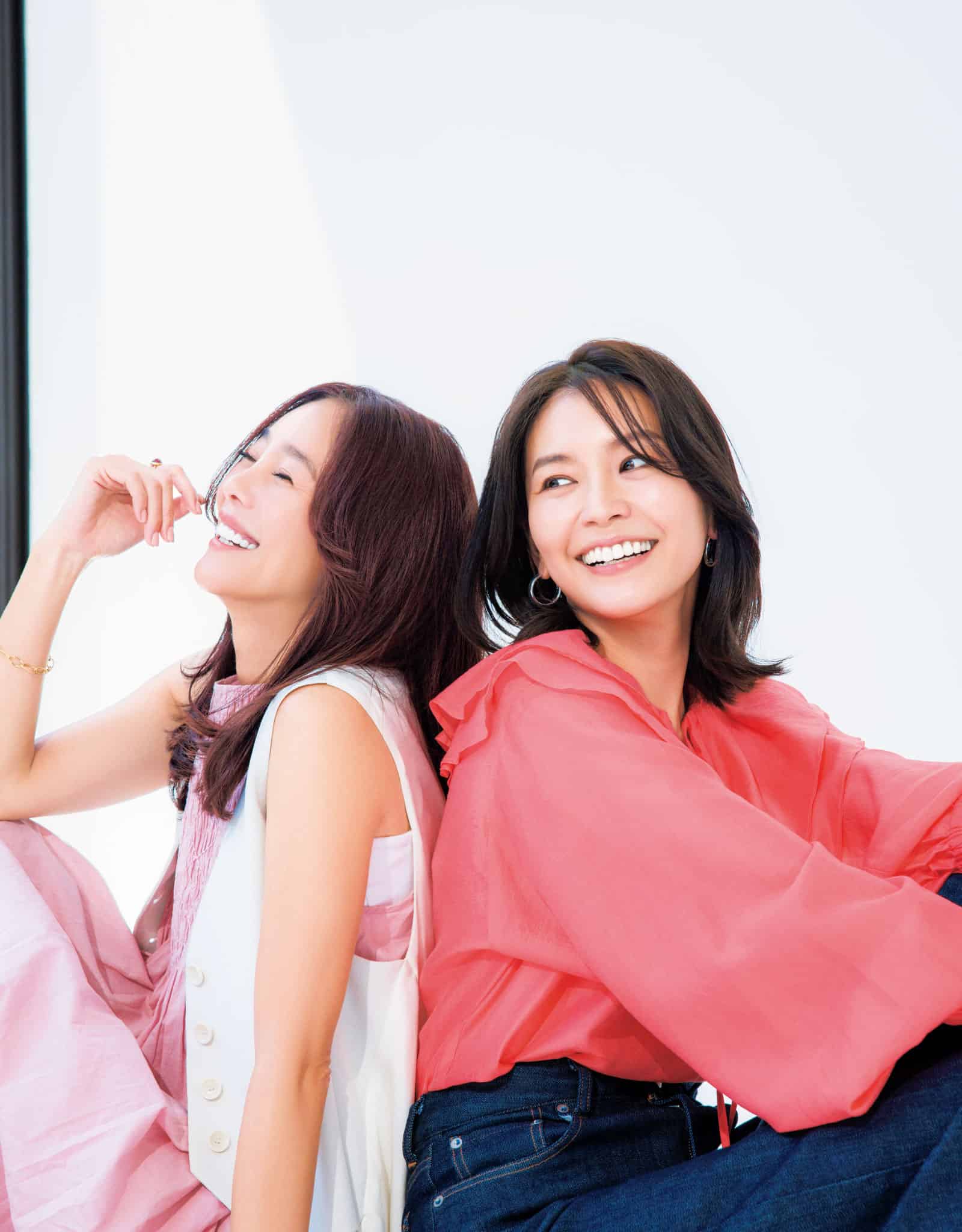 〈ナオさん〉ブラウス¥14,190(ドゥクラッセ)デニムパンツ¥27,500(RED CARD TOKYO×MANOF/クラネデザイン)ピアス¥9,460(ピルグリム/ZUTTOHOLIC)〈マイミさん〉ワンピース¥22,000(ファナカ/ティースクエア プレスルーム)ベスト¥27,500(シーニュ)リング¥313,500(マリハ)ブレスレット¥198,000(ウノアエレ/ウノアエレ ジャパン)