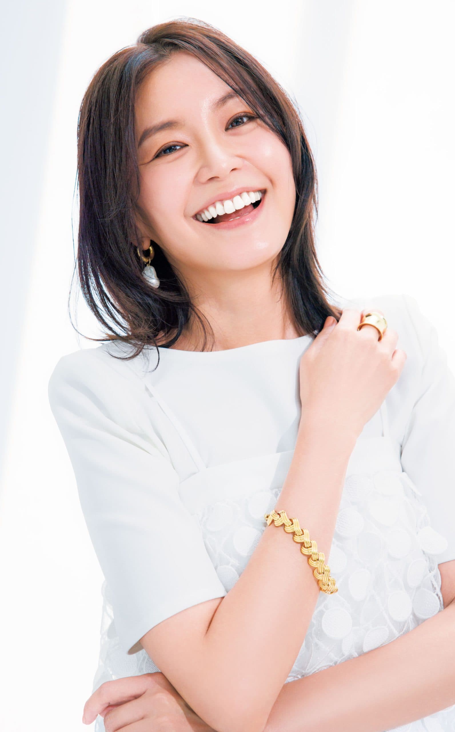 ブラウス¥37,400(ツル バイ マリコ オイカワ)パンツ¥3,990(ユニクロ)ピアス¥15,400(ワンエーアールバイウノアエレ/ウノアエレ ジャパン)リング¥11,660(ピルグリム/ZUTTOHOLIC)