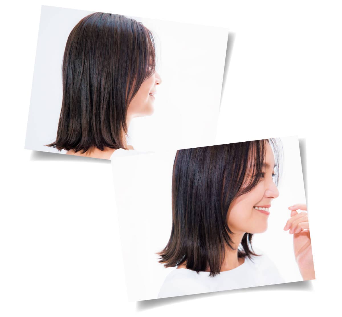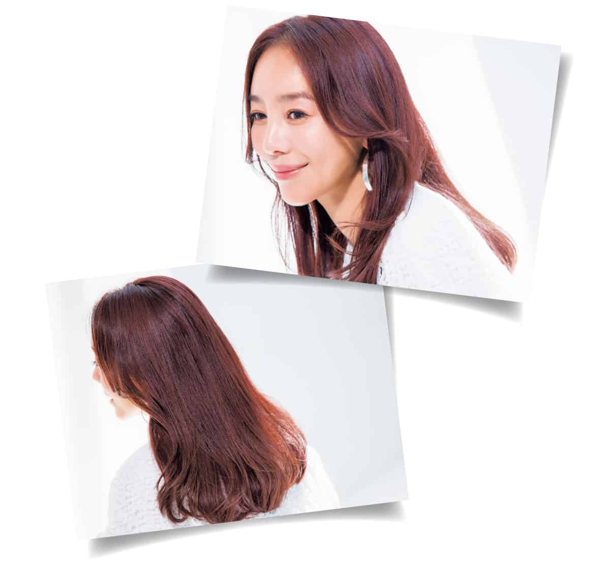 落ち着いた色のトーンのベースに、少し温かみのあるカラーはファッション性も高くてステキ。カラー後はツヤも出て大満足で、色持ちもよくツヤのある髪に自信がもてますね。