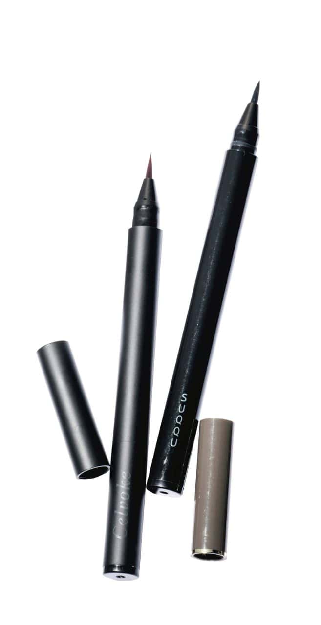 (右から)フレーミング アイブロウ リキッド ペン 04 ¥3,300/SUQQU セルヴォーク インディケイト アイブロウリキッド 01 ¥2,420/セルヴォーク