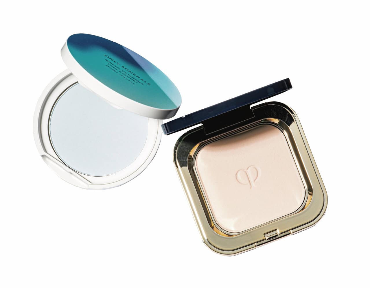 (右から)クレ・ド・ポー ボーテ プードルコンパクトエサンシエルn 5g ¥12,100/クレ・ド・ポー ボーテ ミネラル UV パウダーS クールコンフォート EX02 8g ¥3,960/オンリーミネラル