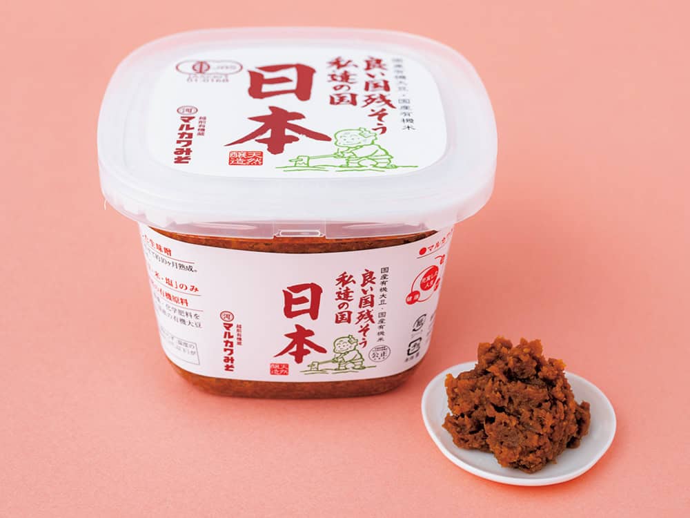 味噌に多く含まれるアミノ酸が疲労回復をサポート。天然の麹菌を自家採取して、国産有機大豆と国産有機米で自然熟成された本格天然発酵の味噌。有機みそ 日本 600g ¥1,318/マルカワみそ