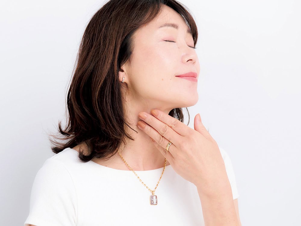 首元も忘れずに! 首とデコルテが整うと顔も若見え。肌を慈しみながらケア。