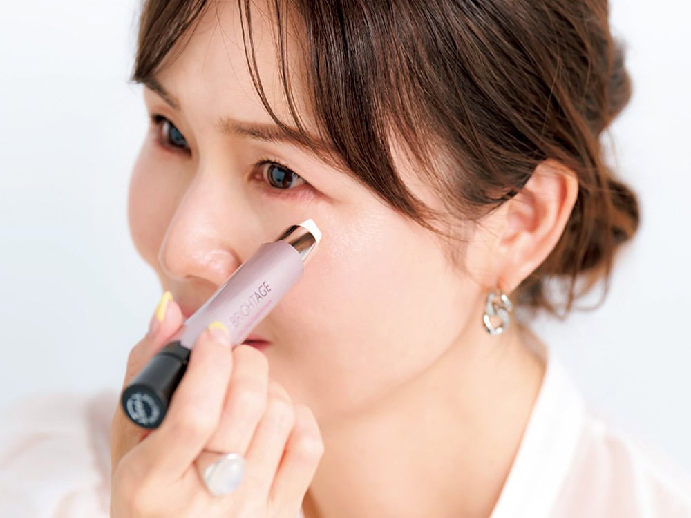 「内側から押し上げるようなハリ感でイキイキとした印象に。指先で目元・口元に薄くつけ、シワが気になる部分には重ねづけでなじませています」(ヘア・メーク NADEAさん)