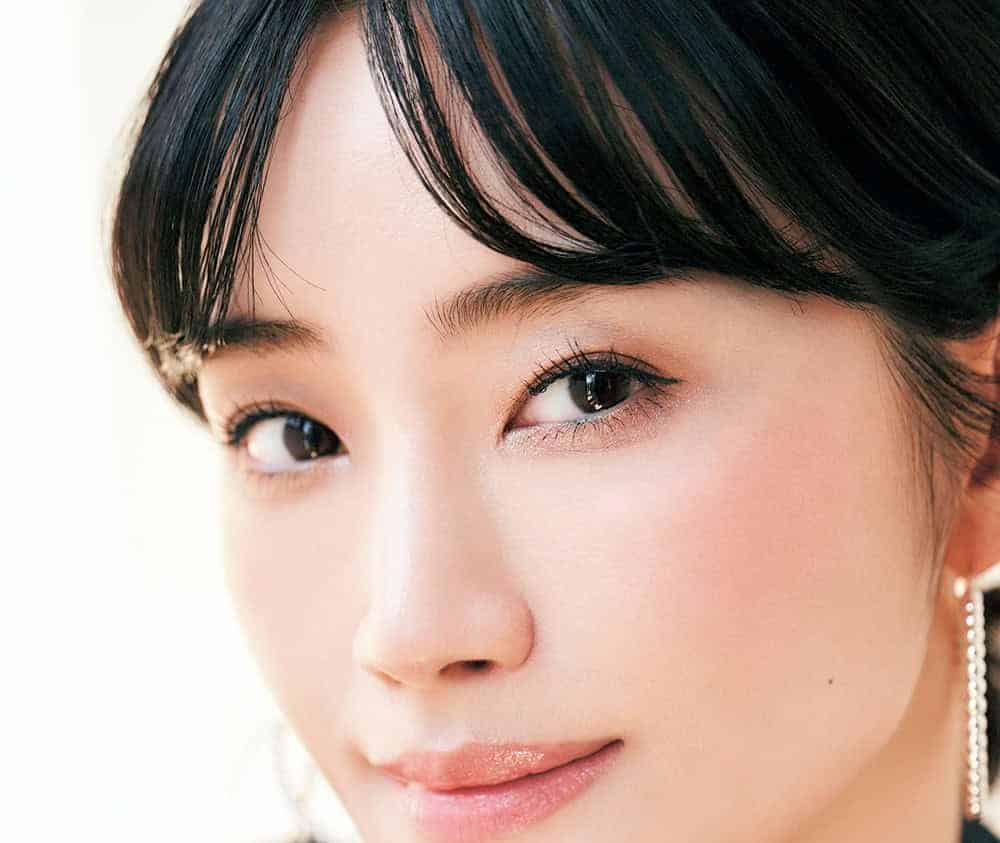 陶器肌と柔らかピンクで多幸感&親しみやすさを演出。シアーなピンクと知的なネイビーが上品メークと好相性。