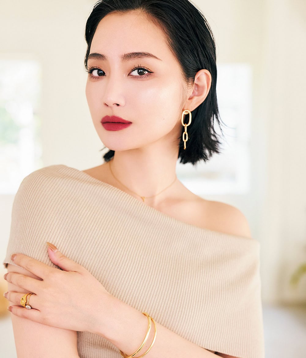 立体感肌とボルドーのリップで大人の意志と色気を宿して。