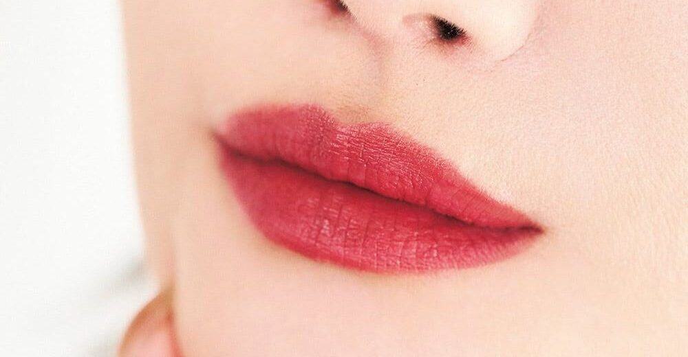 筆で輪郭を整えてからリップを塗って、品の良さを。服やシーンに合わせて唇の輪郭を取ると、かっこいい印象に仕上がります。