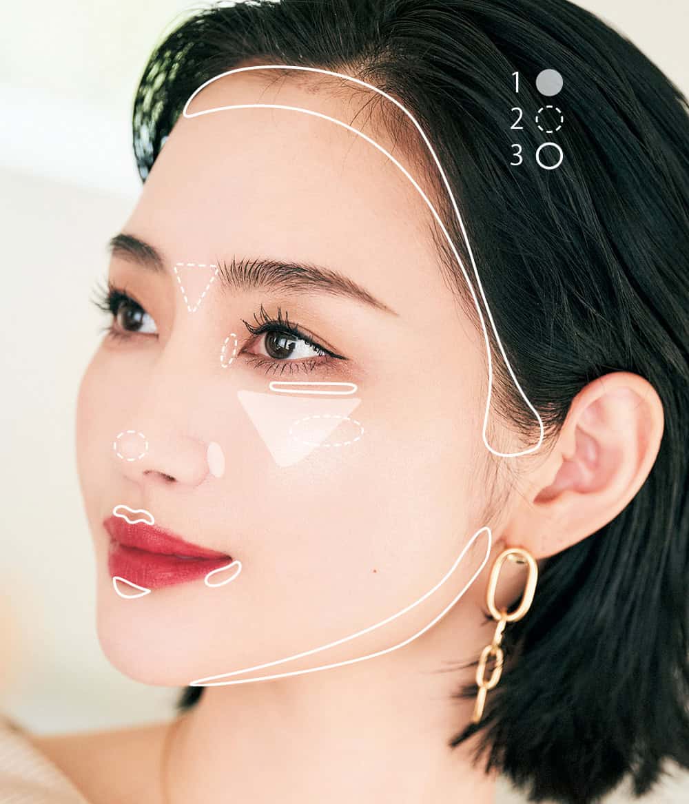 TPOに合わせて老け見えしない肌の質感をパウダーで演出。「厚塗り感なく、自然なセミマット肌を作れます」(柳橋さん)