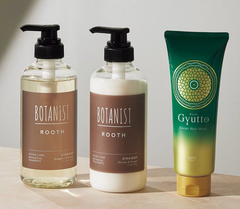 ルース エイジングケア ボタニカルシャンプー ストレート 460㎖ ¥1,650 同ボタニカルトリートメント ストレート 460g ¥1,650/ ともにI-ne