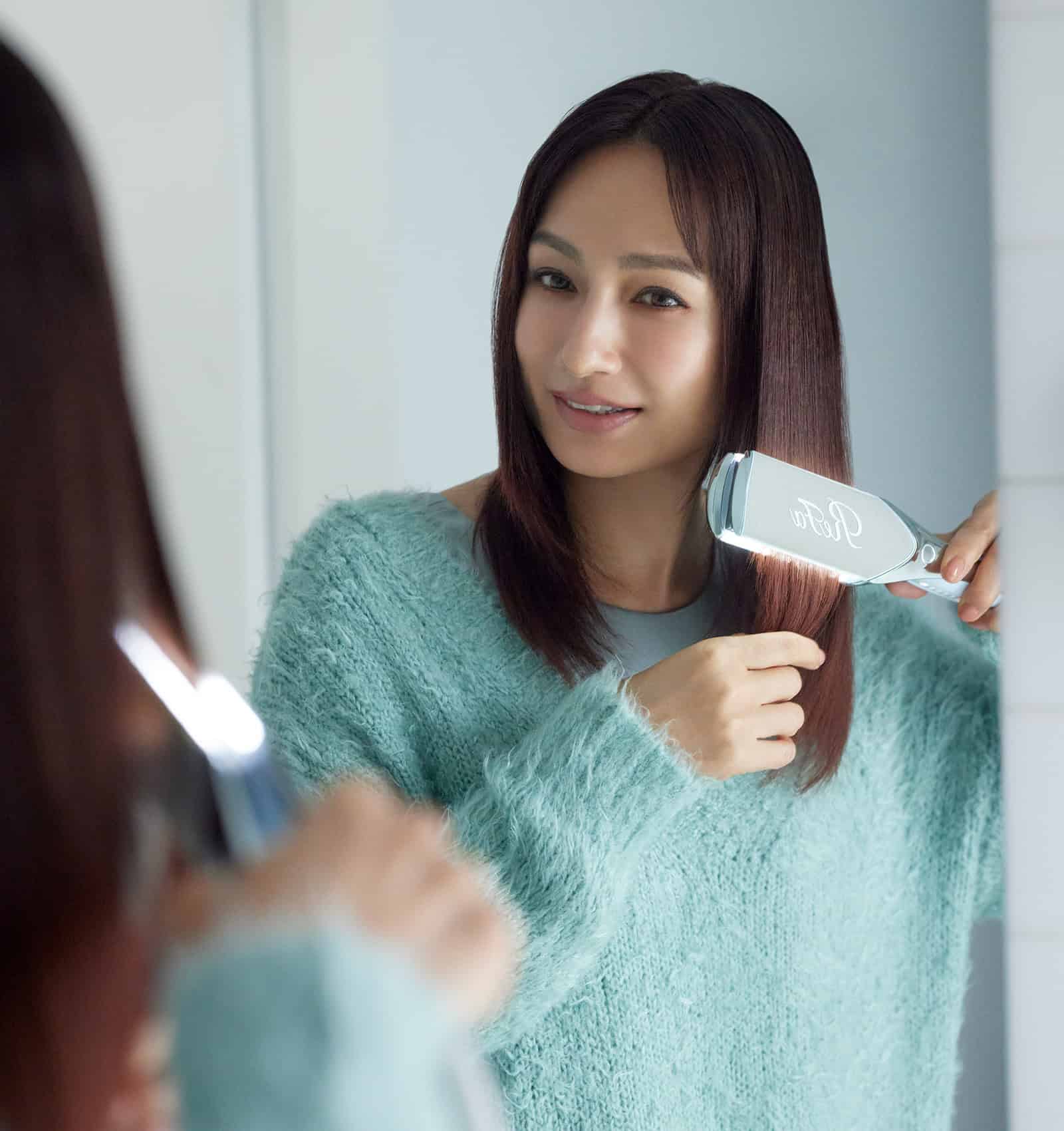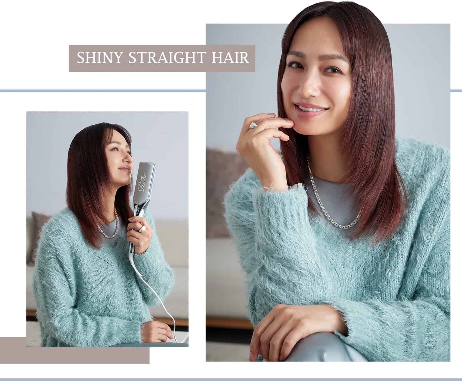 今、久しぶりに髪を伸ばしているんです。この先、髪のエイジングがどんどん気になってくる世代だからこそ、今のうちにロングを楽しもうかなと。軽いのに重厚感があるのでロングヘアの髪もしっかり挟んで逃さずストレスフリー。幅広なのでつい急いで毛束を多めに取ってしまっても、一気にうねりをキャッチできて時短になります。何度も同じ部分に熱を加えることもなくなるので、ダメージ少なく使用できます。ツヤ感もしっかり足せるのでこれ1つでスタイリングが完成します