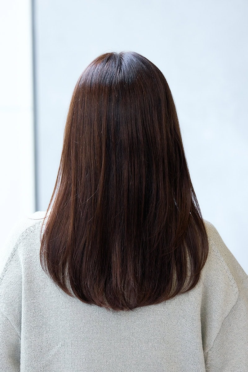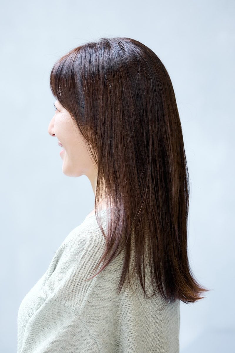 ・オリーブ系で赤みを消したナチュラルブラウンカラーで柔らかさを意識して。
