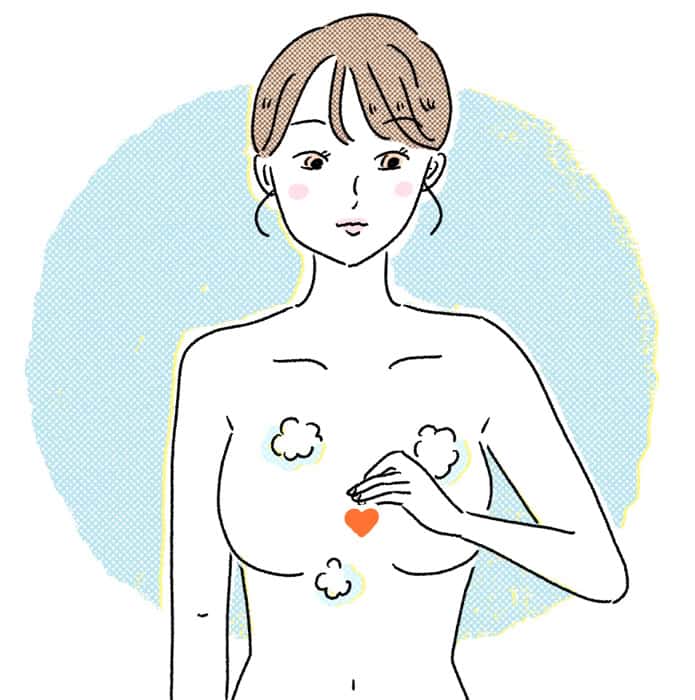 そもそもバストが重く、固く、冷たく感じるのは、リンパの流れが悪いせい。乳首から乳線が張り巡らされているので、乳首に刺激を加えると形も良くなります。バストが大きくても、ちゃんとマッサージした“ふわふわのバスト”なら、そんなに肩凝りも感じないはずです。