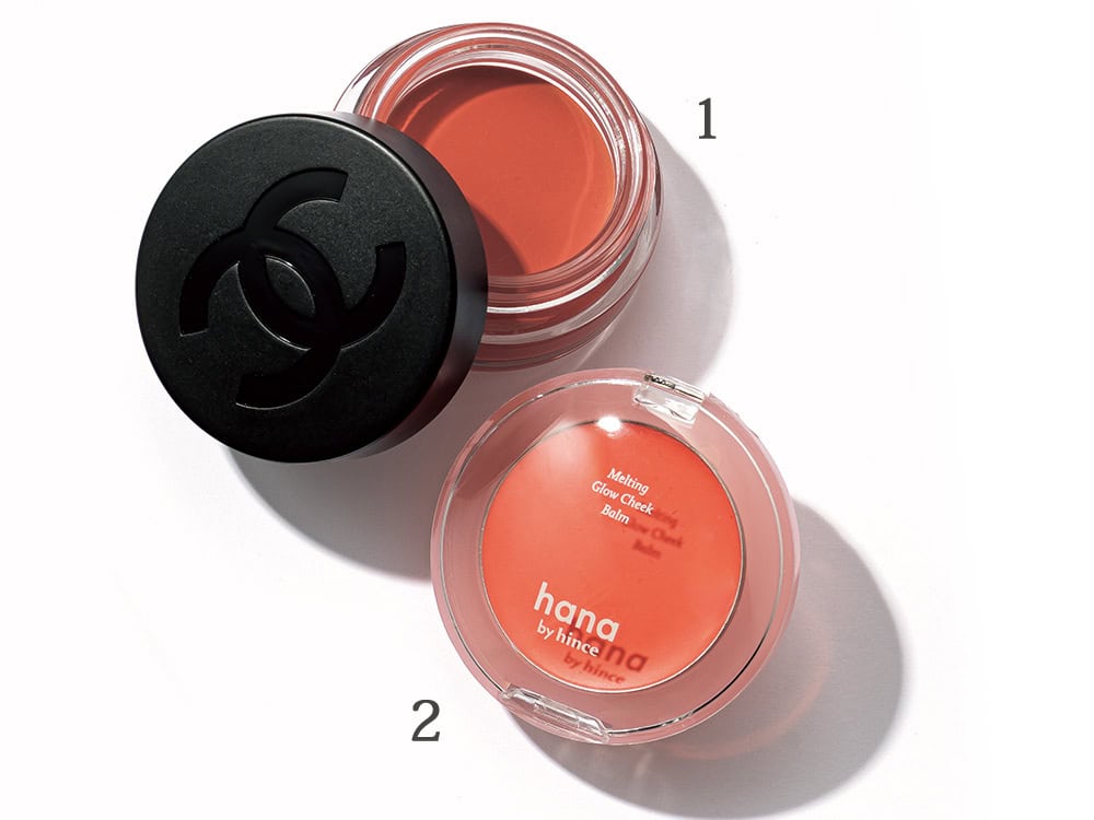1. リップ&チーク ボーム N°1ドゥ シャネル 全8色 ¥6,930/シャネル、2. hana by hince メルティンググロウチークバーム 全3色 ¥990/hince