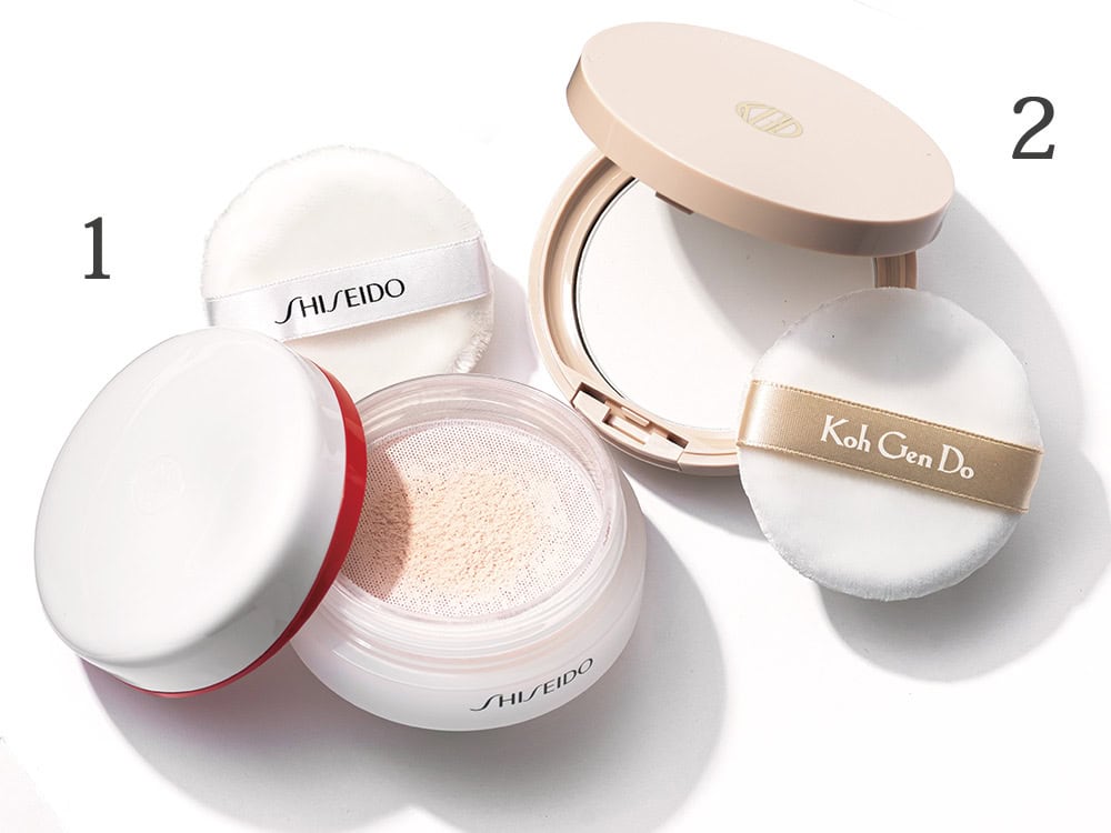 1. エッセンス スキンセッティングパウダー 全3色 ¥5,500/SHISEIDO、2. ザ・パウダー コンパクト ¥4,840/Koh Gen Do