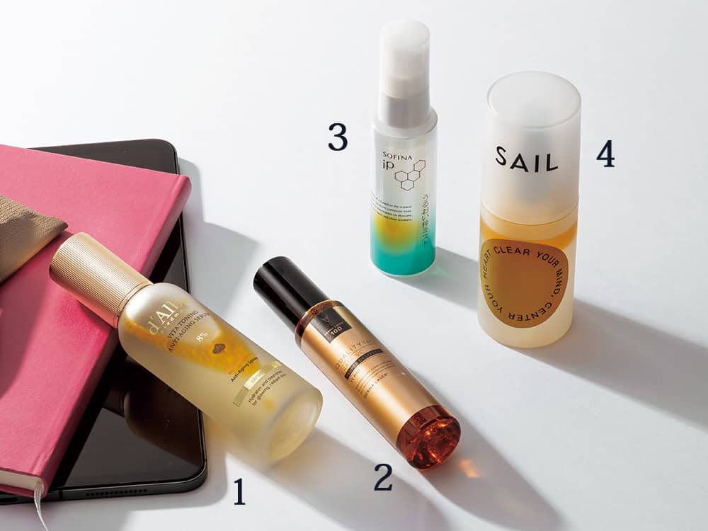 1. RMK インスタント トリートメントスティック ¥4,180/RMK Division、2. プレステージ マイクロ セラム ユー 20㎖ ¥30,800/パルファン・クリスチャン・ディオール