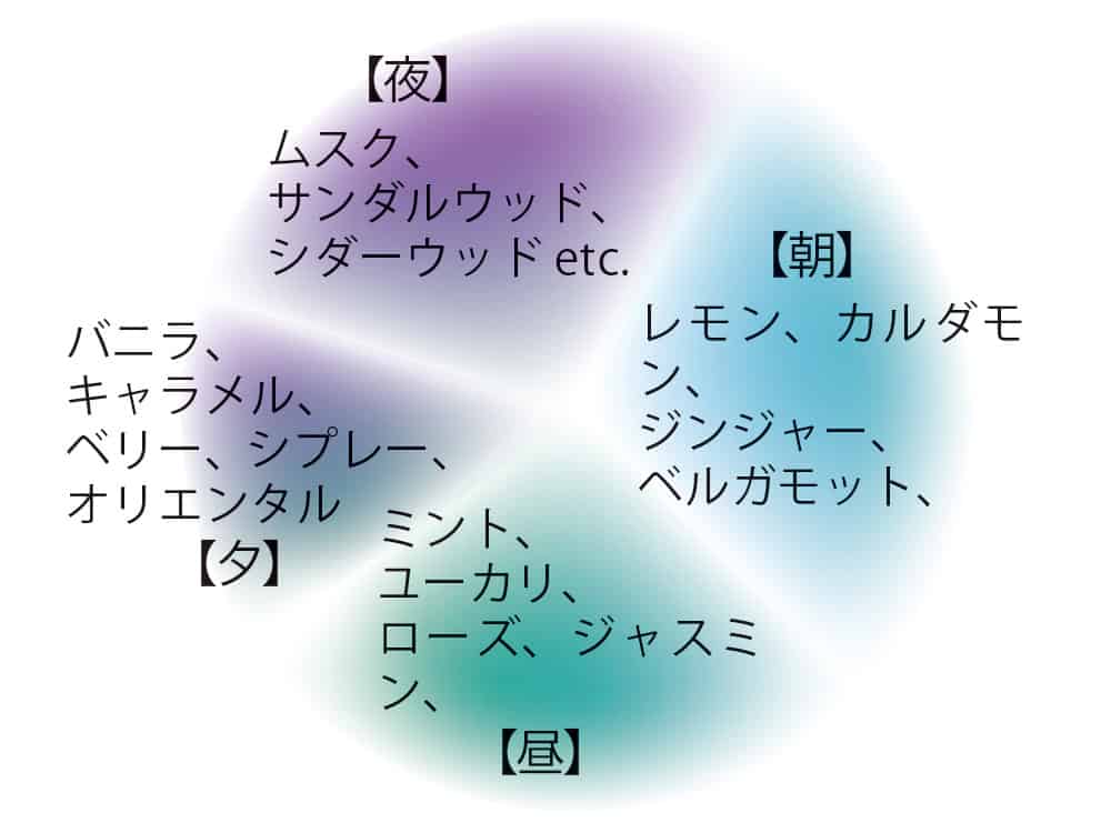 気分に合わせて時間ごとに香りをチェンジして、気持ちをスウィッチしてくださいね。
