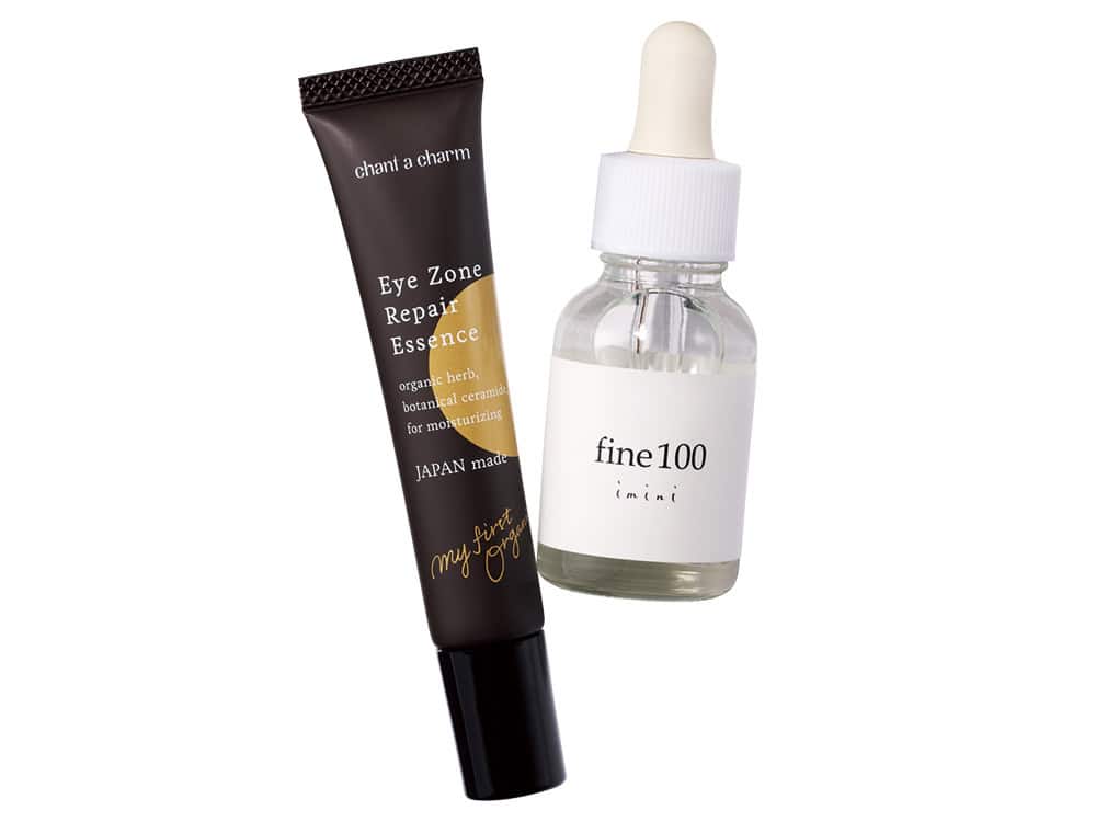 (右)肌の水分・油分バランスを整えるパントエア菌配合。イミニ ファイン100 20㎖ ¥5,500/イミニ免疫薬粧(左)敏感肌の目元ケアにも◎。アイゾーンリペアエッセンス 15㎖ ¥4,950/チャントアチャーム