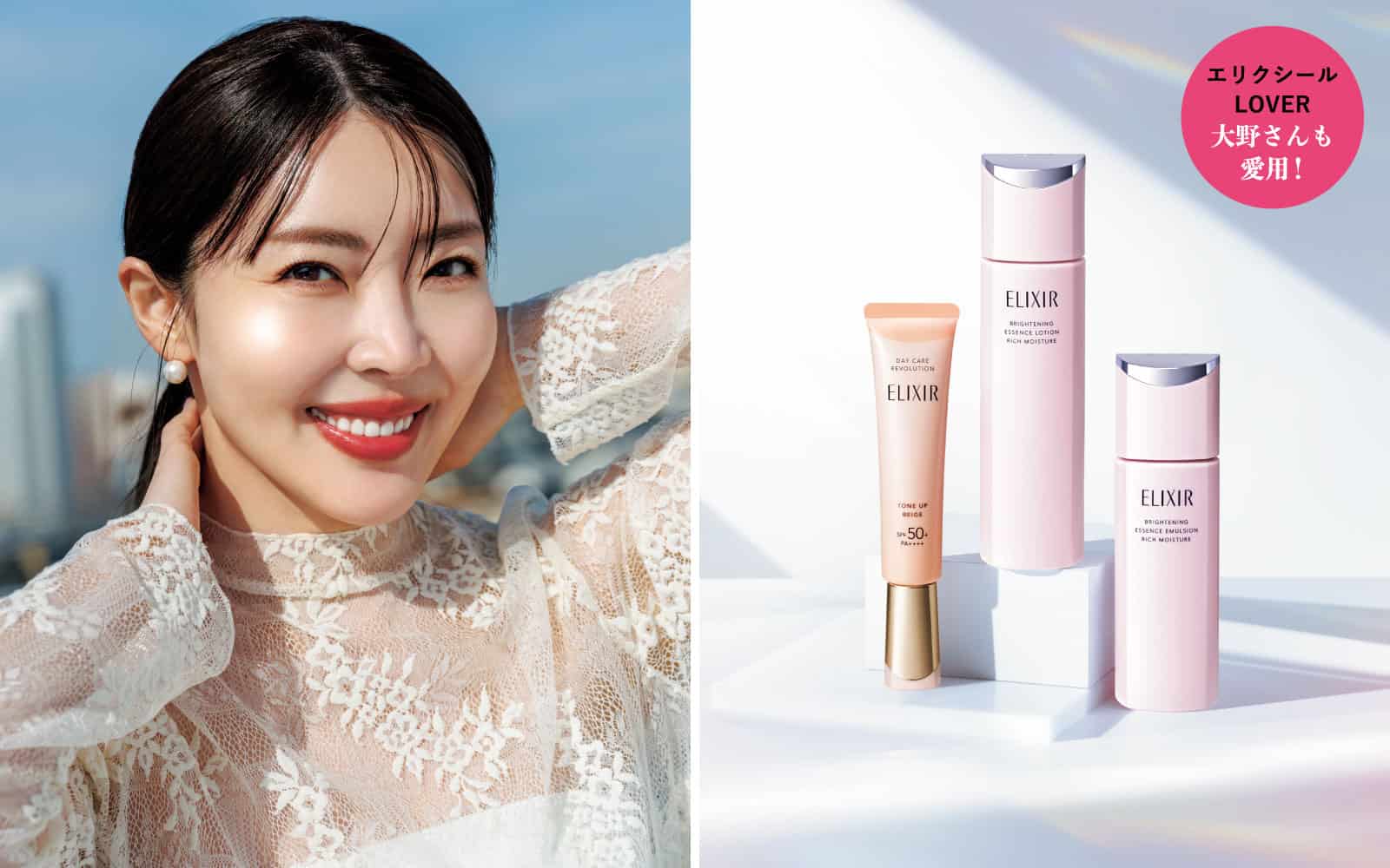 紫外線が強まるこれからの季節。シミやくすみ、ハリ不足など、大人の肌悩みに寄り添う新化粧水・乳液と日中用乳液の新色がこの春、エリクシールから登場! リアルに愛用してきた大野真理子さんに、その進化を聞きました。朝は守り、夜はうるおいで満たす基本ケアが、透明感とハリに満ちた「つや玉」輝く肌へ導きます。