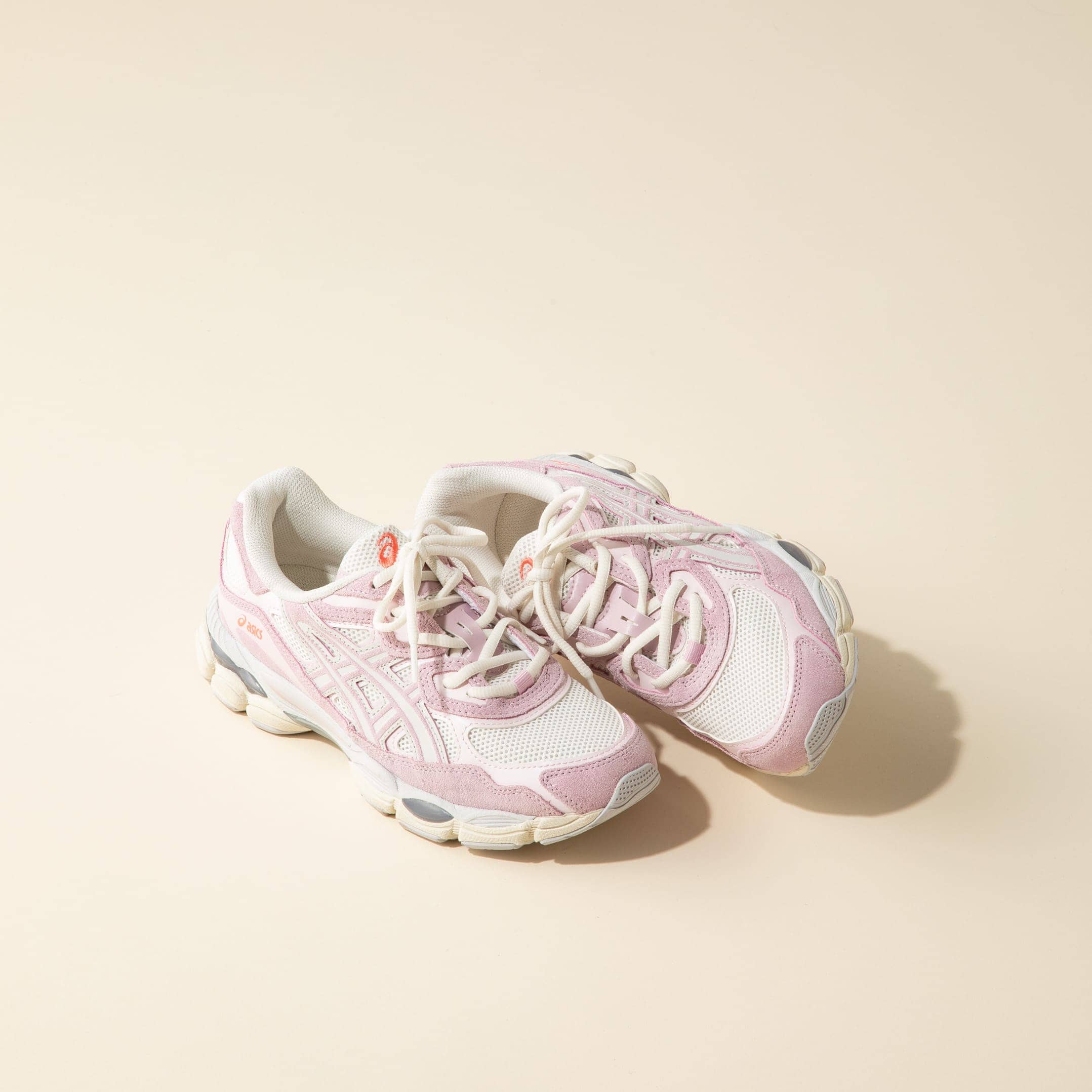 洒落感を格上げできる、トレンドのアシックススニーカー。くすみピンクは大人にも取り入れやすく、カジュアルコーデのアクセントに。