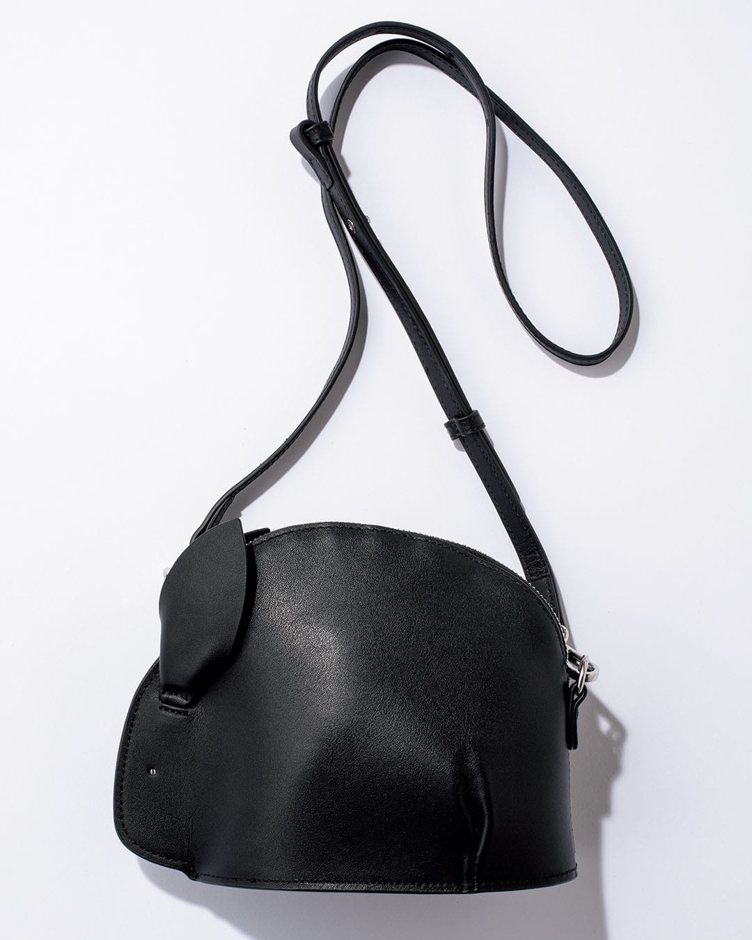 ブランドを象徴する幸運のウサギをモチーフにしたバッグ。スマホやリップが入るサイズでショルダーストラップは取り外しできる。上質なレザーを使用。