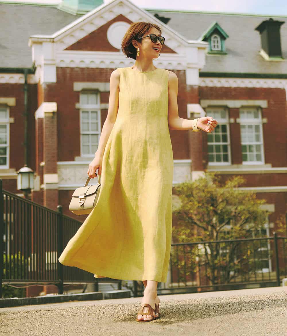 北海道から九州まで広がる〝映えカラー前線〟が圧巻! 各地域のきれい色を着こなす街映えカラースタイルには、過ごし方や気分にも、それぞれの都市ならではの特徴が。今回は大阪&神戸読者に人気の高かった【くすみイエロー】のワンピースをご紹介します。