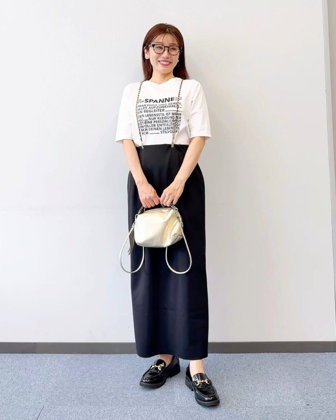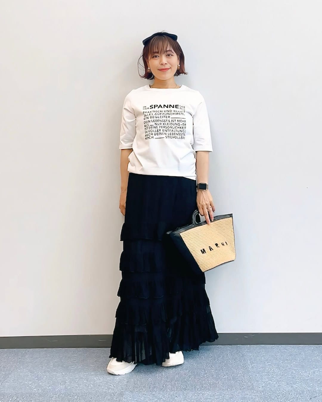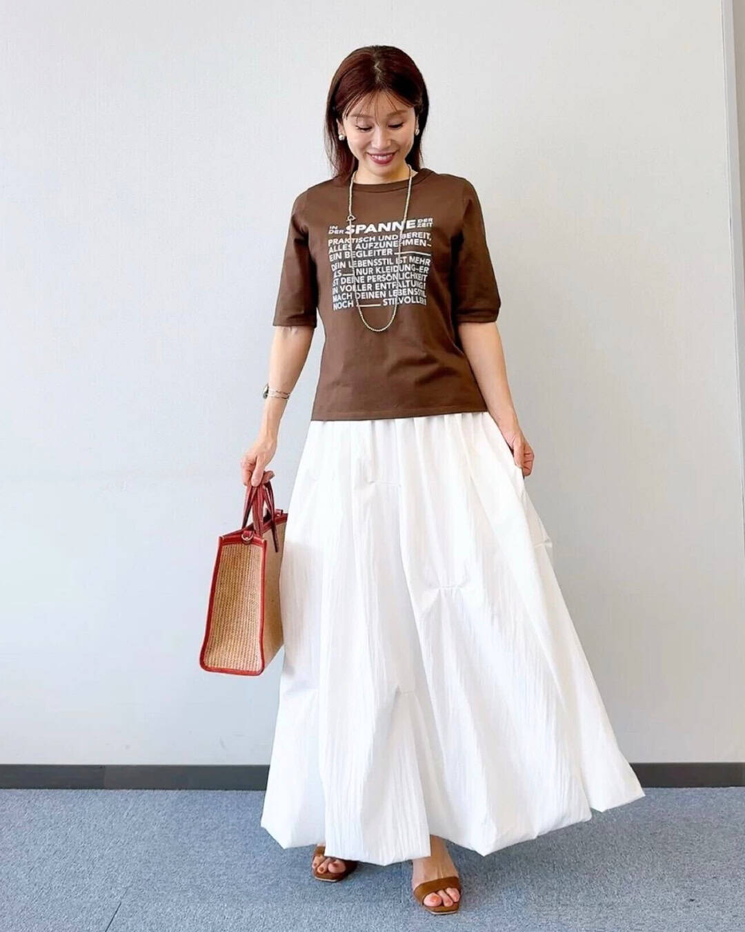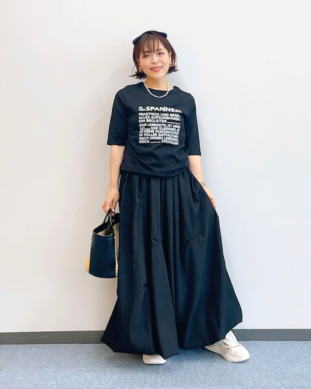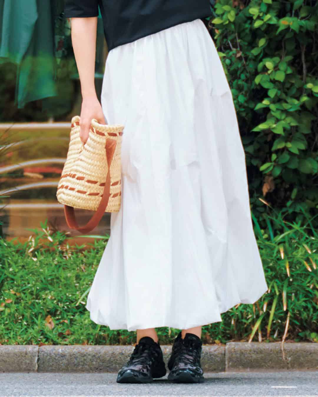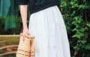 Tシャツ¥9,900スカート¥12, 100(ともにスパン)バッグ¥15,400(ケッシュ ルエッセンシャル/ザ エディ