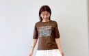 長めの五分袖がプリントTのカジュアルさを程よくセーブ。ボトムスの色を選ばないモノトーンカラーと、カラーアイテムとも相性のいい流行のブラウン。マシンウォッシャブル対応で気がねなく着られる。