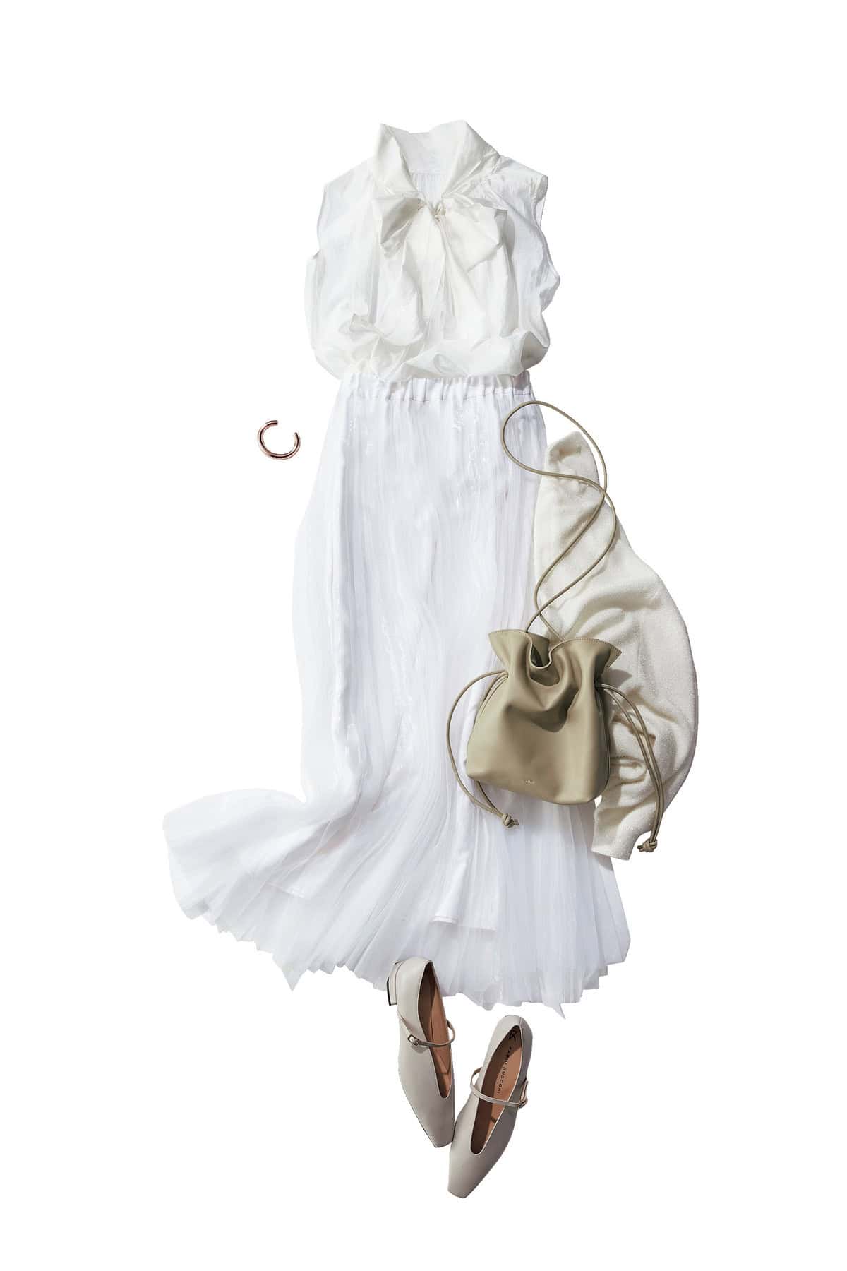 擁護者(ISFJ)は白のオーガンジースカートでコーデに柔らかさを
