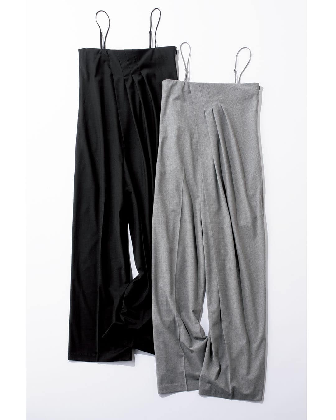 きちんと感のあるマニッシュなオールインワンは、合わせるインナーや羽織り次第でオンオフ問わず着られる万能アイテム。取り外し可能な細いストラップが女性らしく、胸元はゴム仕様で楽に着脱できます。