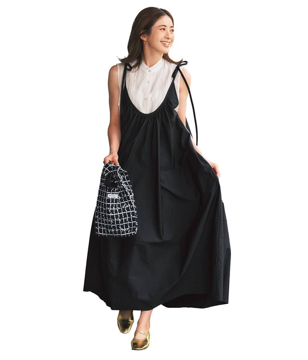 7月号の読者人気No.1アイテムはロンハーマンの黒ワンピースに決定!ノースリのマキシ丈は使える黒ワンピの代表フォルム。パフ袖のGジャンやチュールのバッグなど、旬な羽織りや小物をプラスすればよりいっそう今年らしい着こなしに。