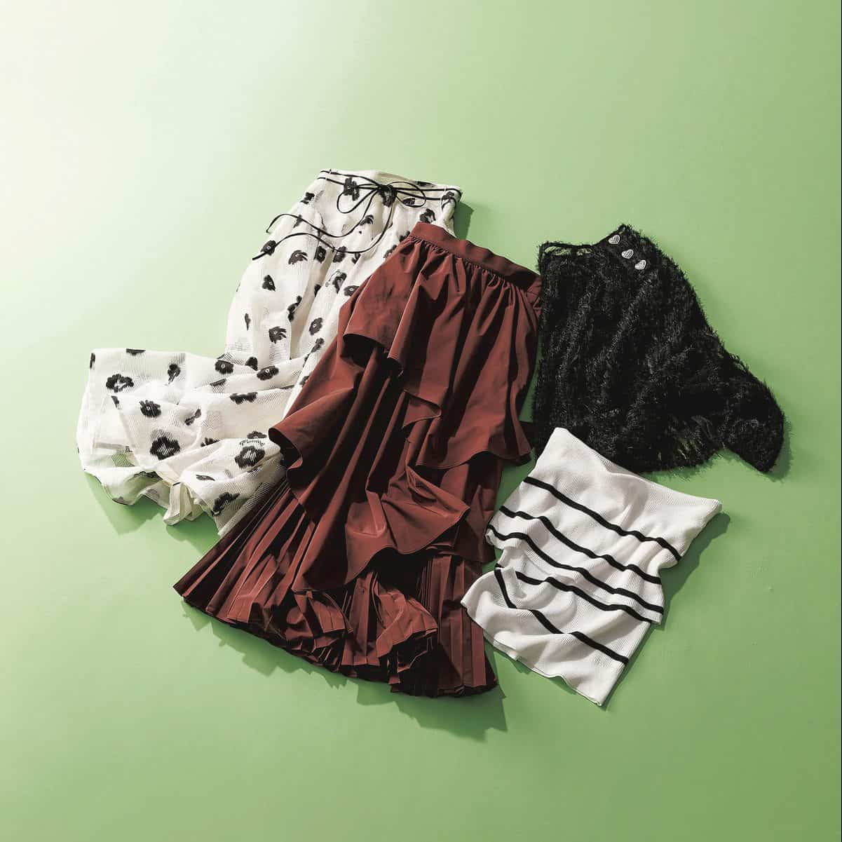 スカート¥26,400(メゾンスペシャル/メゾンスペシャル 青山店)ニット※一部店舗のみ販売¥1,990カーディガン¥2,990(ともにユニクロ)バッグ¥14,300(ナナナナ)シューズ¥9,990(MANGO)ピアス¥15,400ブレスレット¥20,900リング¥17,600(すべてワンエーアールバイウノアエレ/ウノアエレ ジャパン)