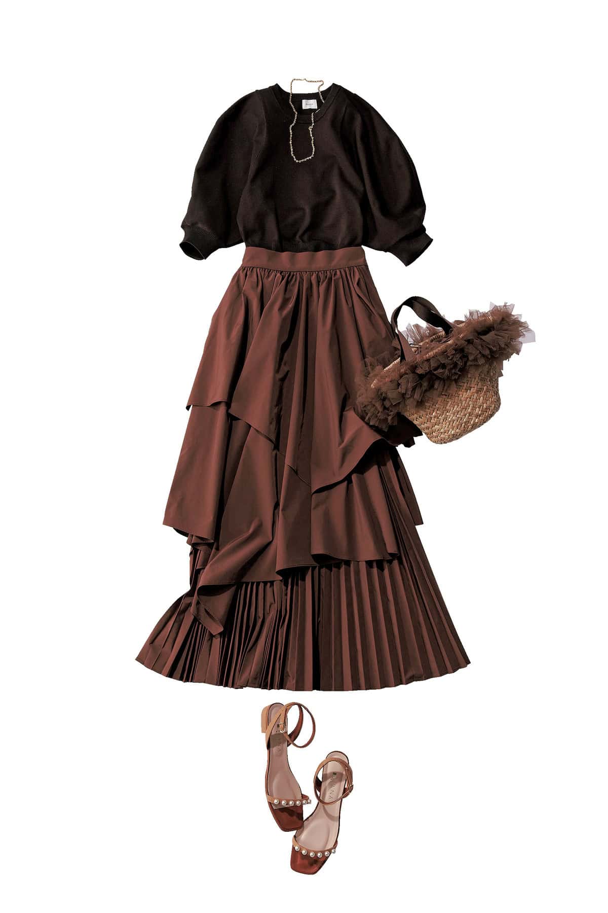 感受性豊かなロマンティストには自分を表現できるデザイン性の高いスカートが最適!ドラマティックな世界観を楽しんで。サンダルを合わせて季節感を取り入れながら抜け感もプラス。