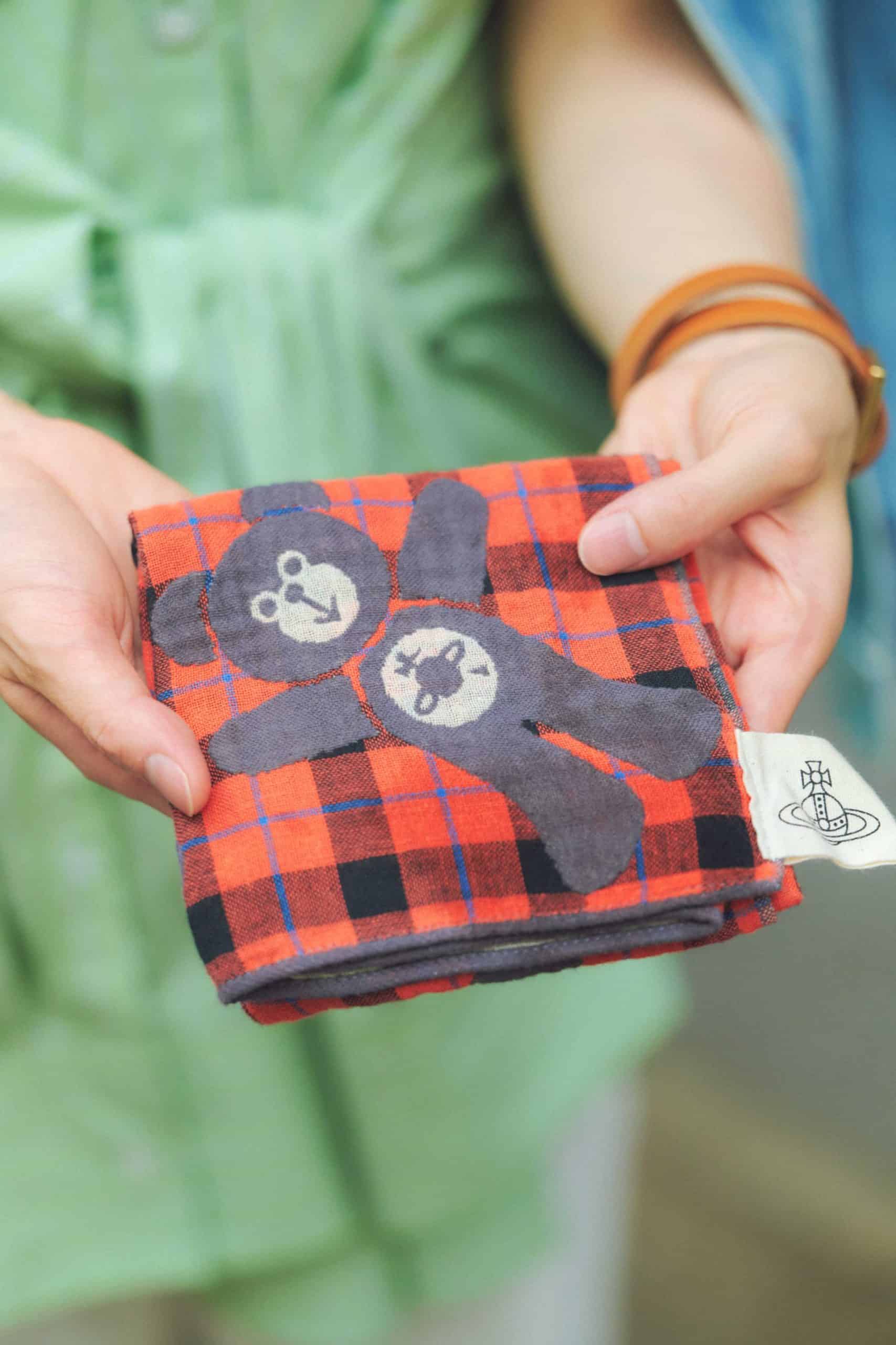 先日購入したばかりのハンカチは、食事時に膝に広げる事もできる大判サイズが購入の決め手でした。Vivienne Westwoodらしい赤ベースのチェック柄にクマのキャラクターが可愛いのもお気に入りポイントです。Vivienne Westwoodのハンカチは人と被りにくく、可愛いデザインも豊富なので10枚くらいコレクションしています。