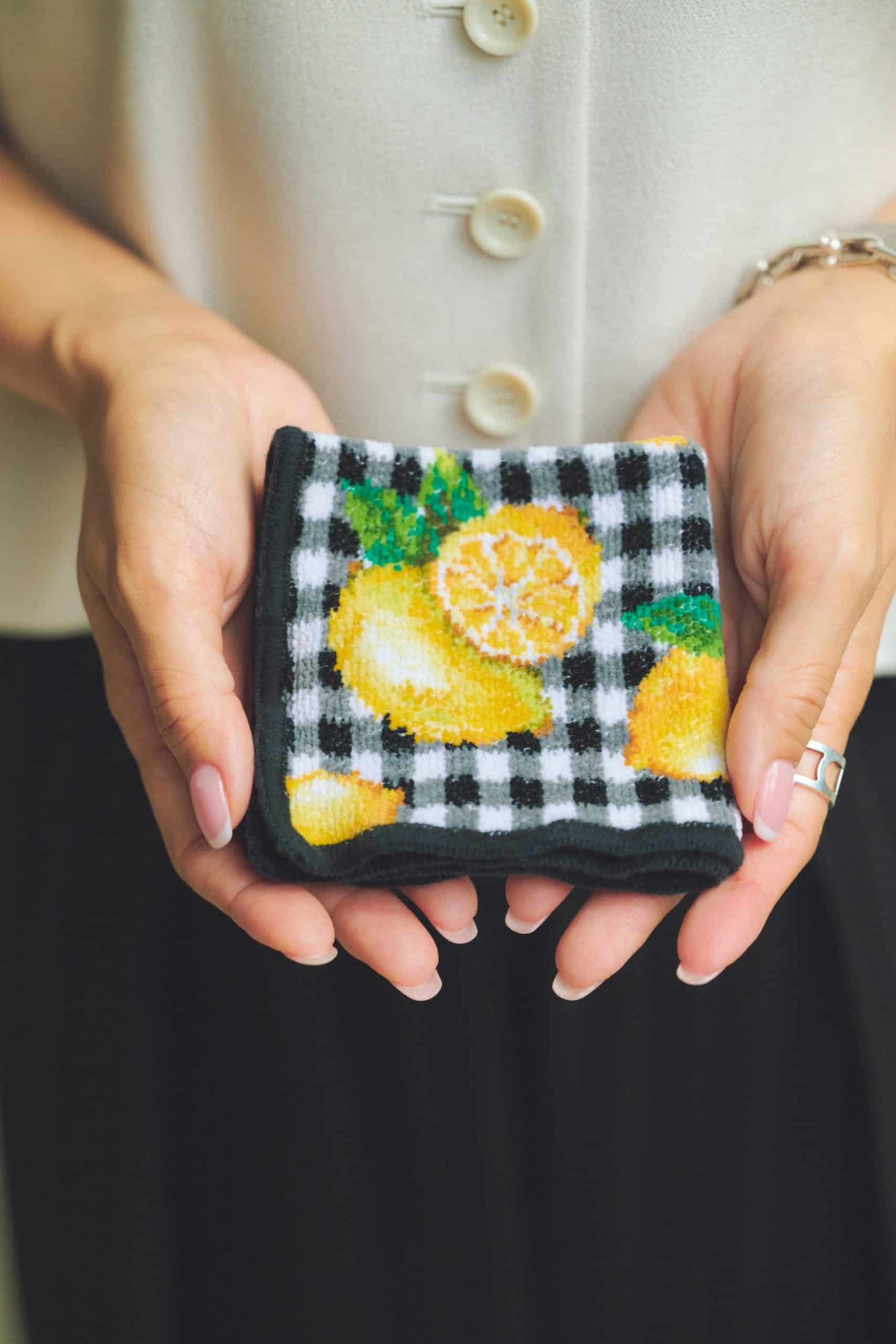 友人にプレゼントで貰ってから吸水性と速乾性の良さにハマり、気に入った柄に出会った時は2枚買いするほどFEILER好きになりました。こちらも2枚買いした2枚目でUNITED ARROWSとのコラボハンカチです。レモン×ギンガムチェックが大人可愛くて気に入っています。ハンカチは、その日のファッションやバッグの色と揃えるのが好きで色やデザインに合わせてお気に入りを集めています。