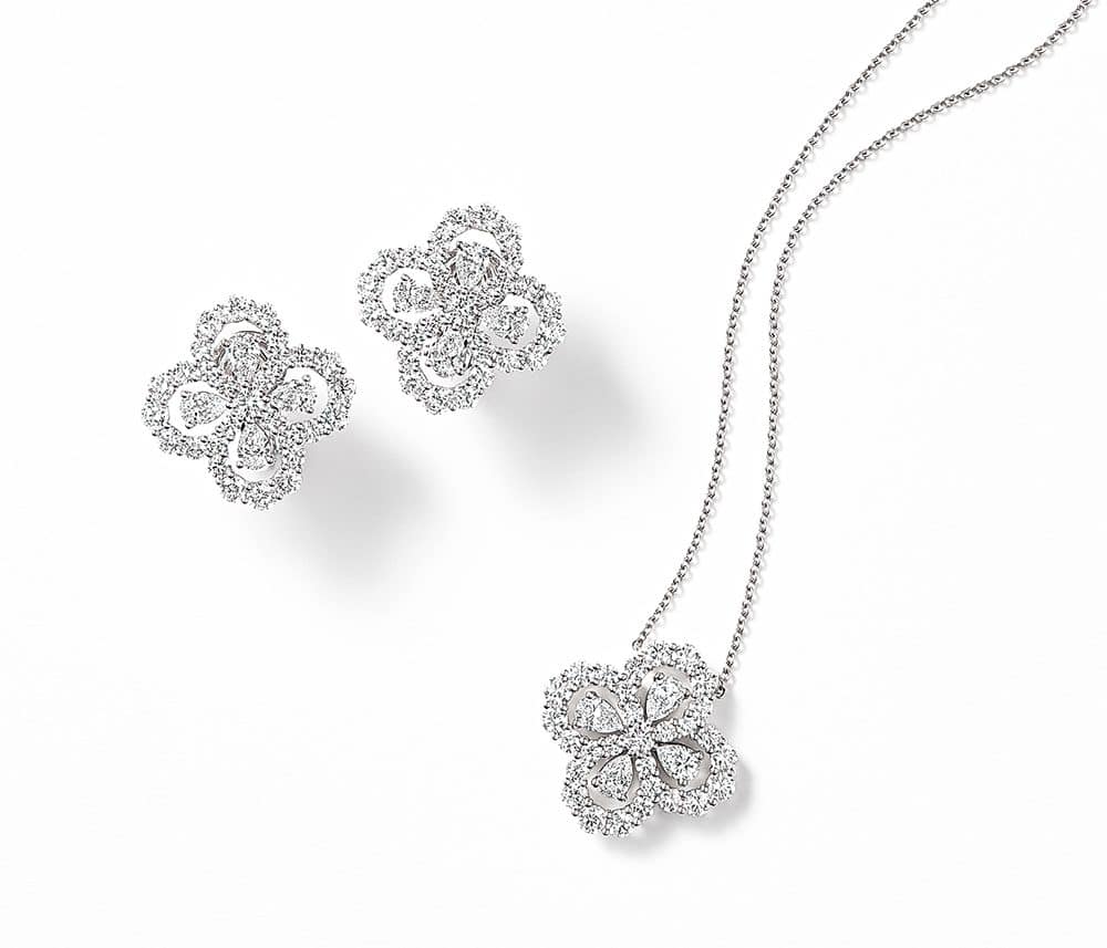 「ループ・フルモチーフ」ペンダント〈DIA×プラチナ〉¥3,146,000 イヤリング〈DIA×プラチナ〉¥5,852,000(ともにハリー・ウィンストン/ハリー・ウィンストン クライアントインフォメーション)