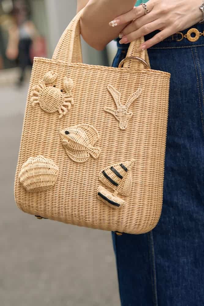 モチーフバッグとスリットスカートで大人の抜け感を